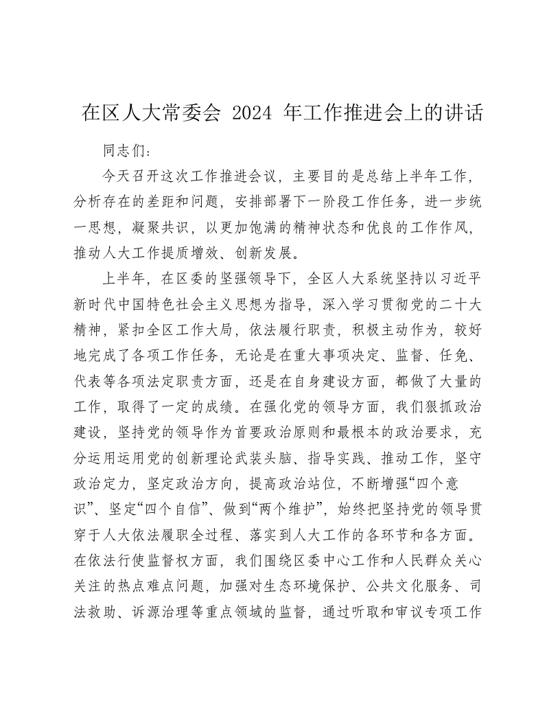 首页工作文档在区人大常委会2024年工作推进会上的讲话