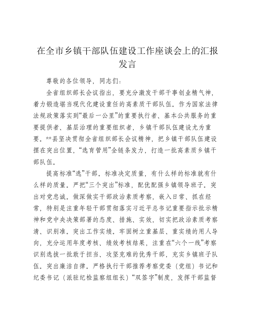 在全市乡镇干部队伍建设工作座谈会上的汇报发言