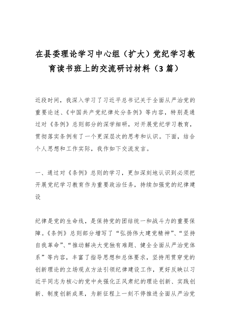 - 在县委理论学习中心组扩大党纪学习教育读书班上的交流研讨材料3 (1)