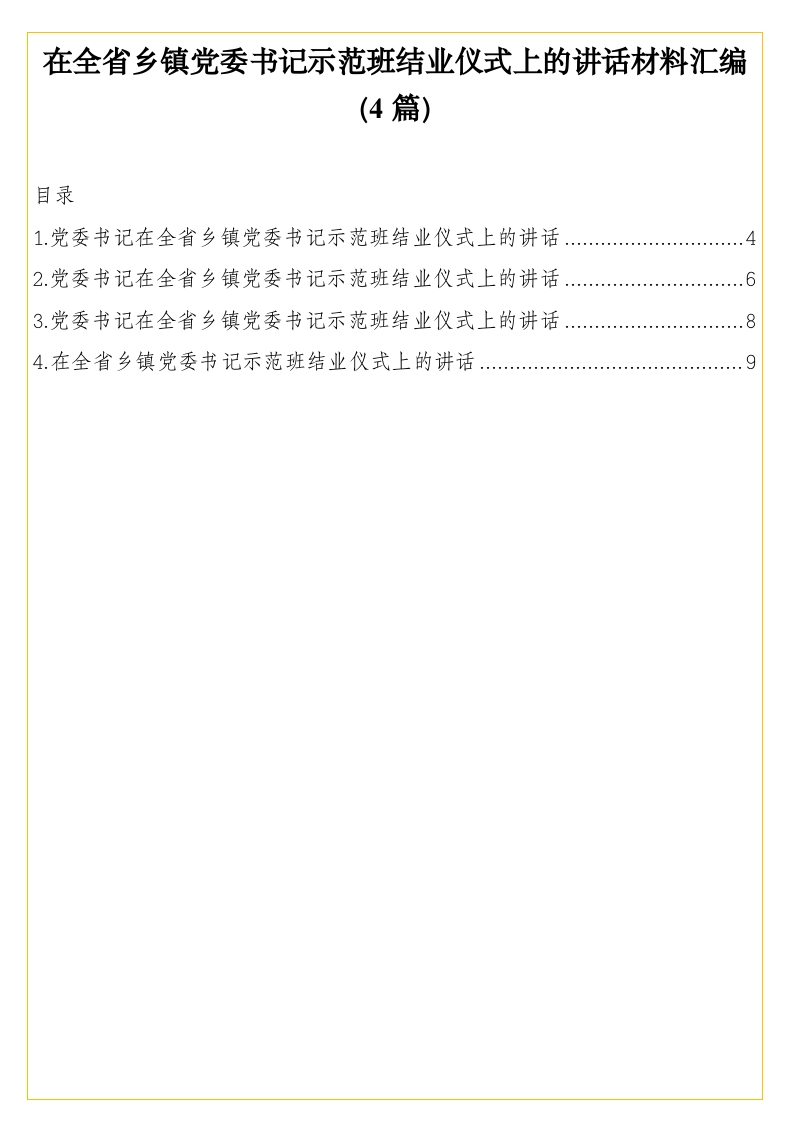 首页写作素材在全省乡镇党委书记示范班结业仪式上的讲话材料汇编(4篇)