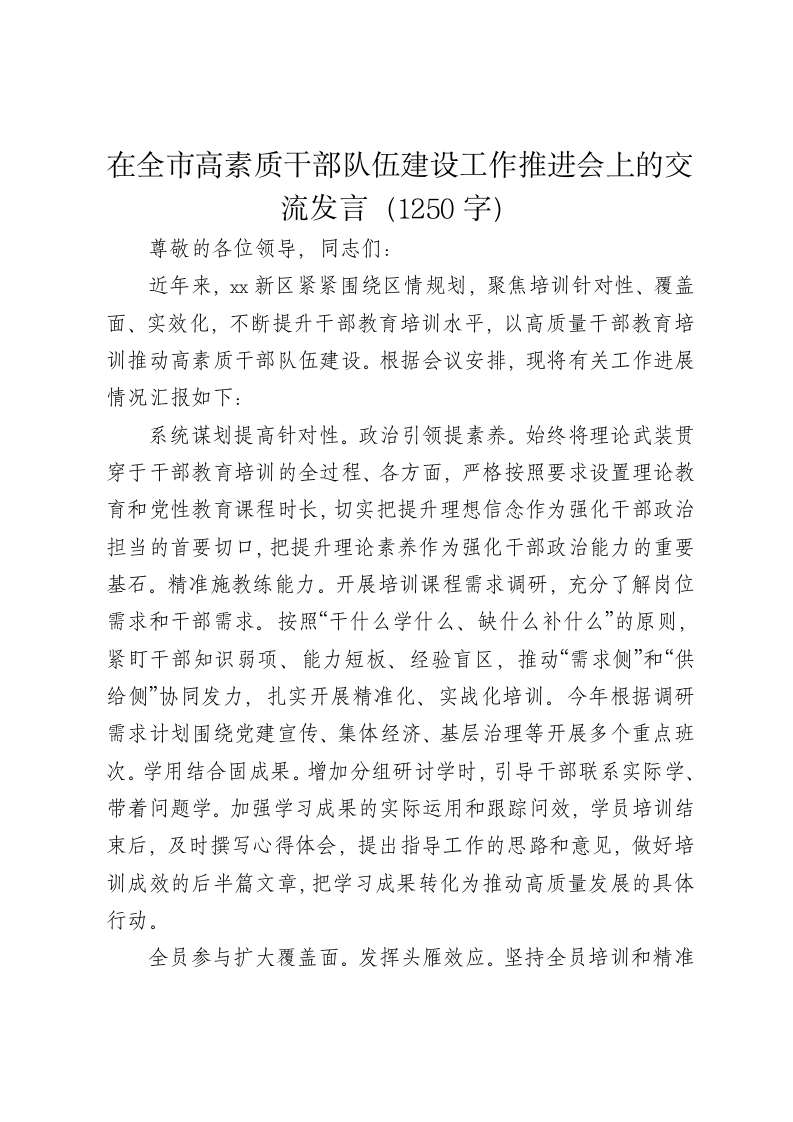在全市高素质干部队伍建设工作推进会上的交流发言1250字
