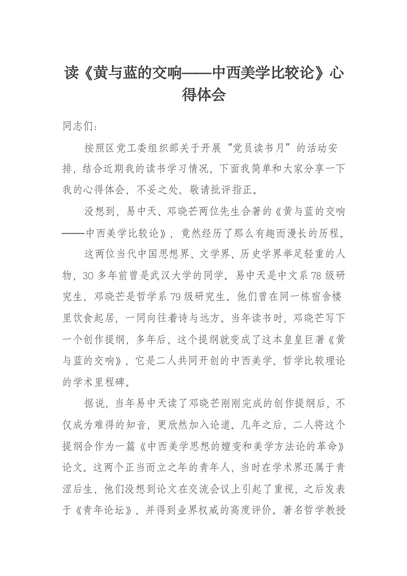 读《黄与蓝的交响——中西美学比较论》心得体会