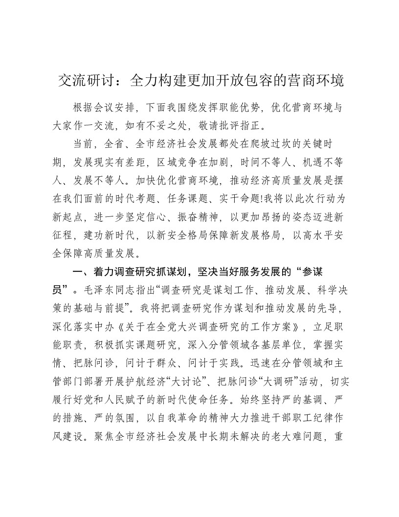 首页学习提升交流研讨:全力构建更加开放包容的营商环境