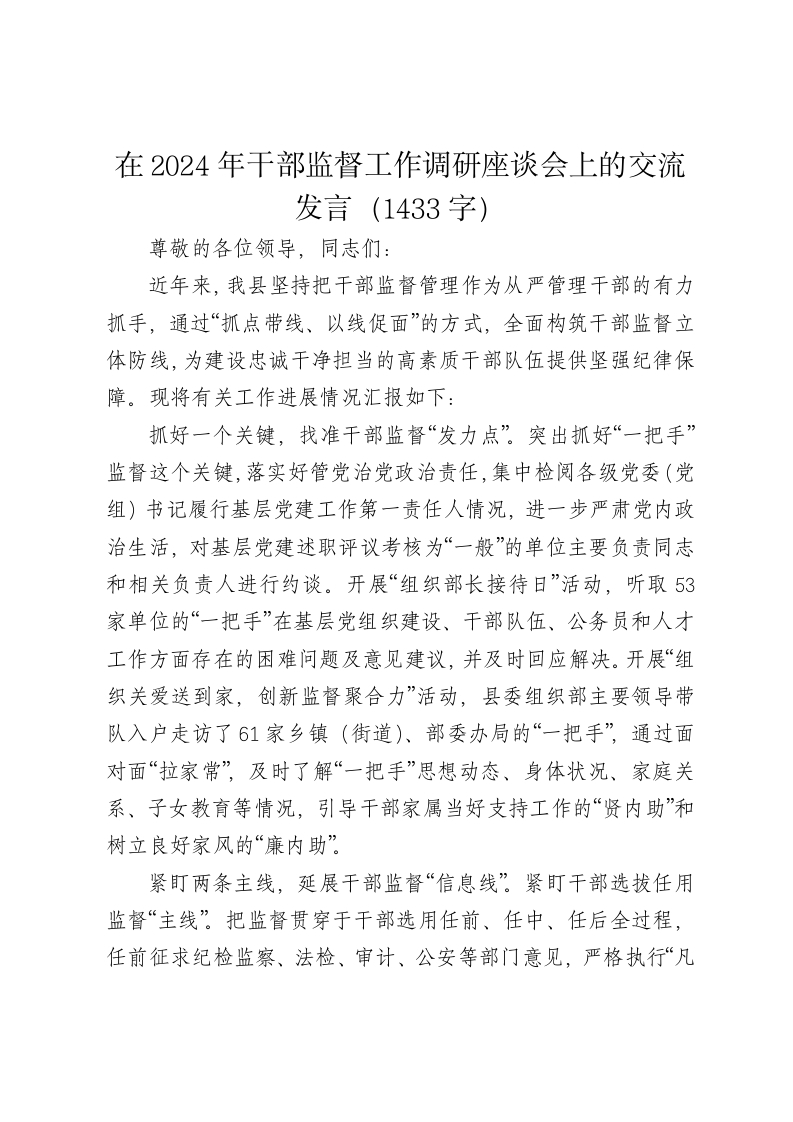 在2024年干部监督工作调研座谈会上的交流发言1433字