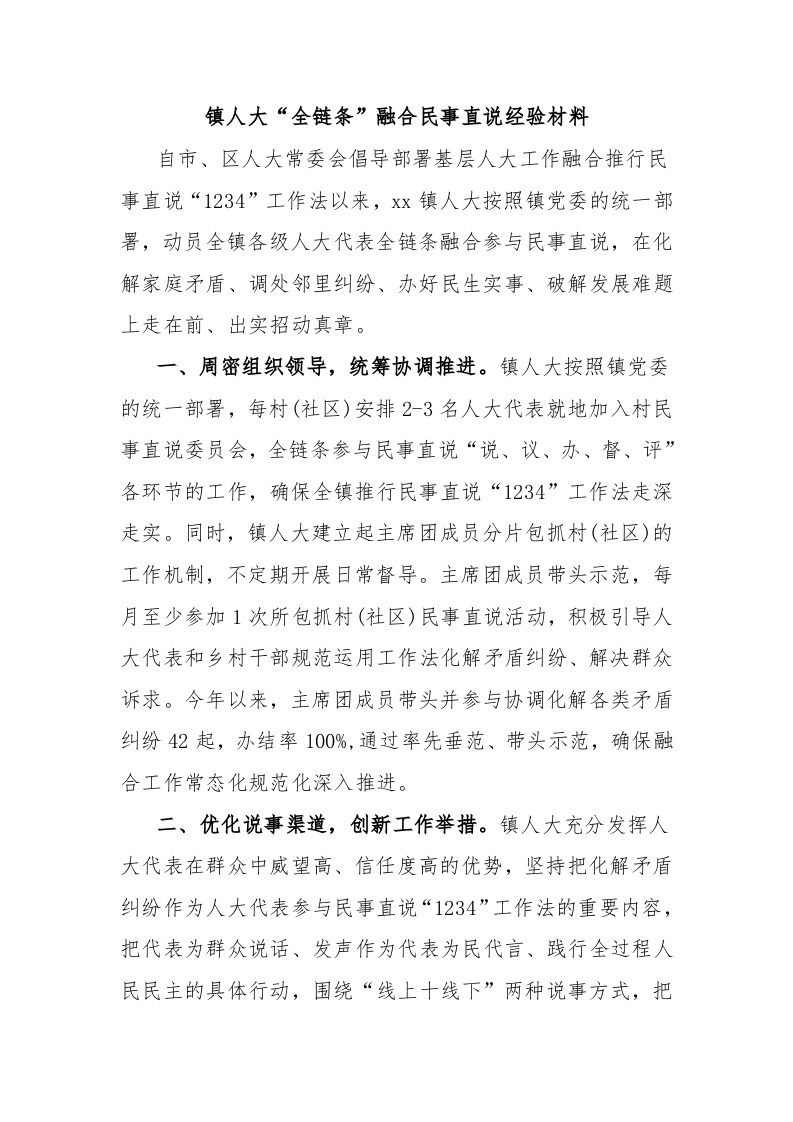 首页工作文档镇人大“全链条”融合民事直说经验材料