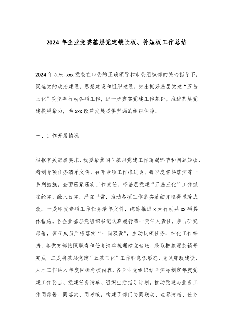 首页精选范文2024年企业党委基层党建锻长板、补短板工作总结