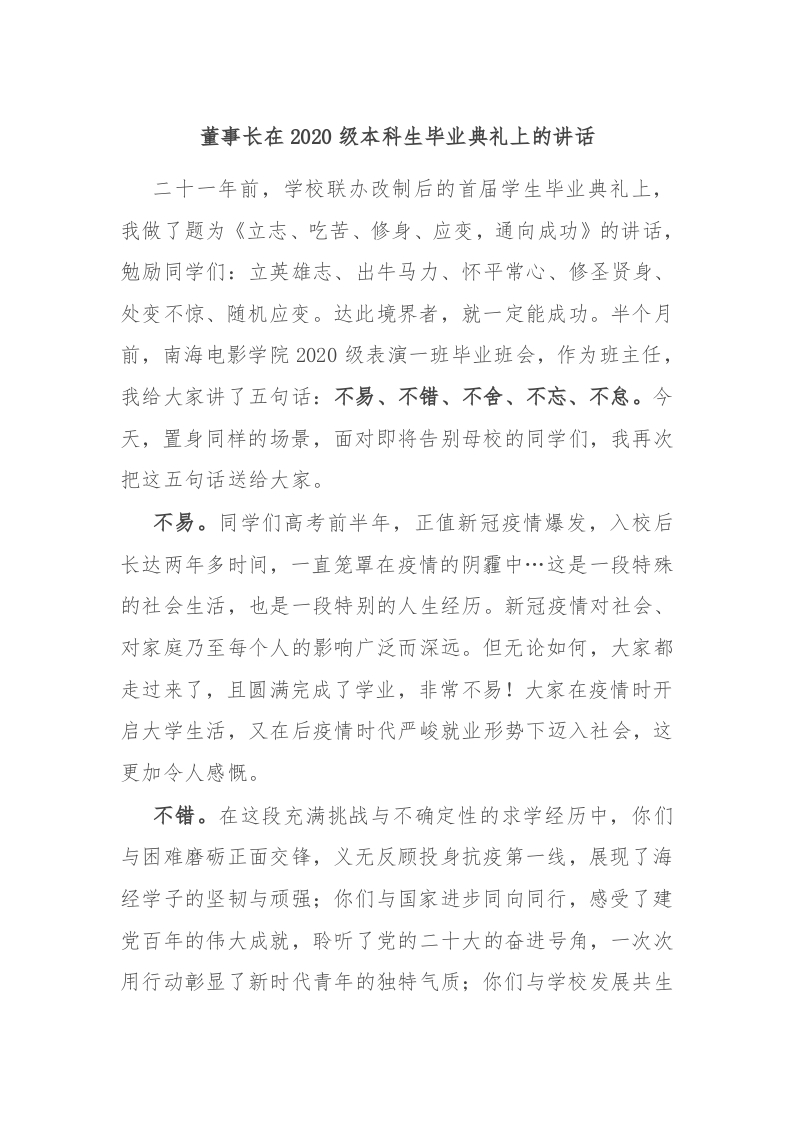首页精选范文董事长在2020级本科生毕业典礼上的讲话