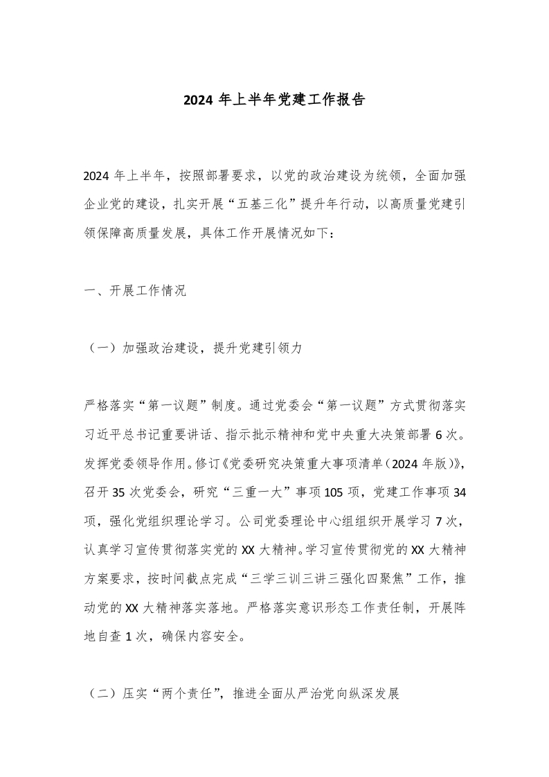 2024年上半年党建工作报告