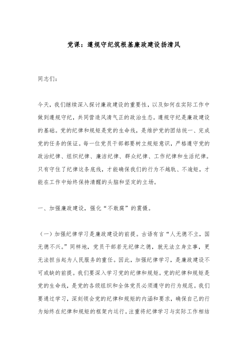 首页讲课讲稿党课:遵规守纪筑根基廉政建设扬清风
