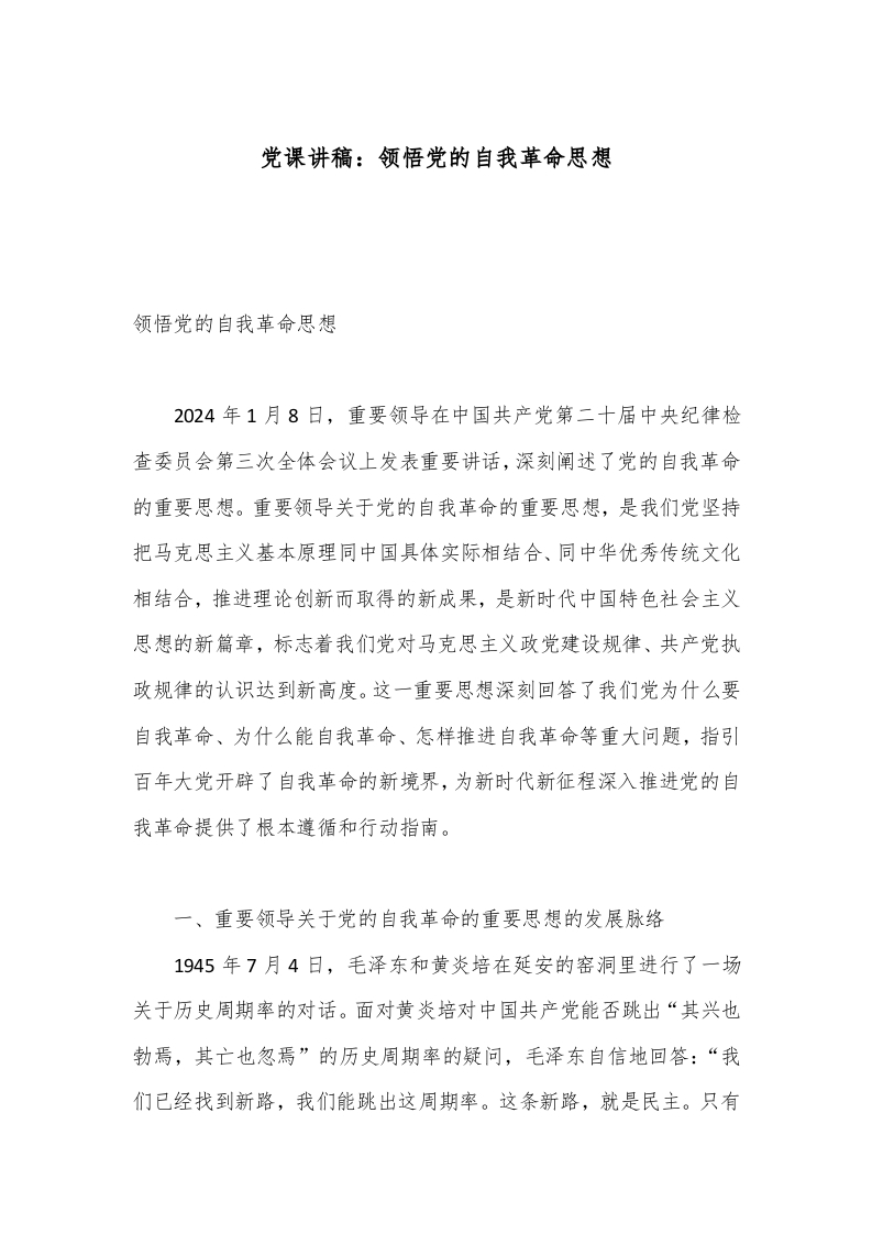 首页讲课讲稿党课讲稿:领悟党的自我革命思想