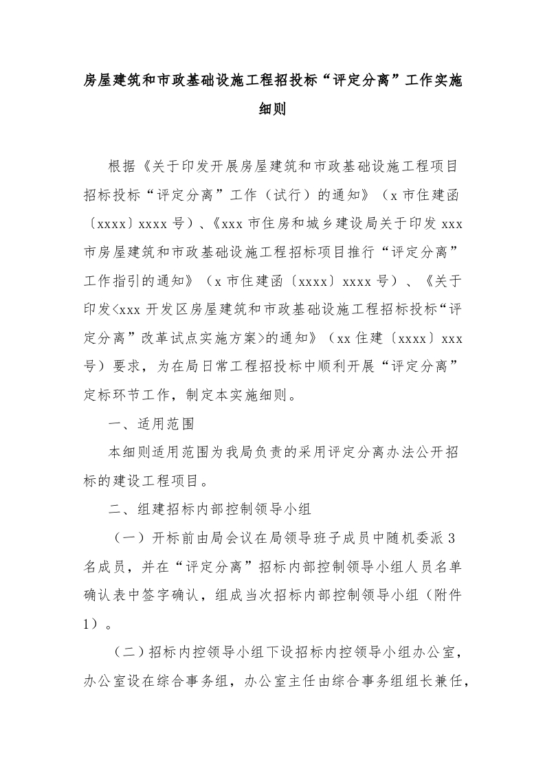 房屋建筑和市政基础设施工程招投标“评定分离”工作实施细则