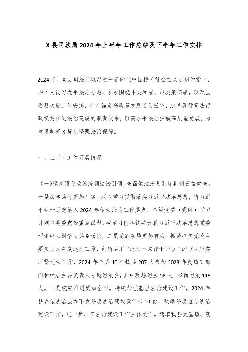 首页讲课讲稿X县司法局2024年上半年工作总结及下半年工作安排