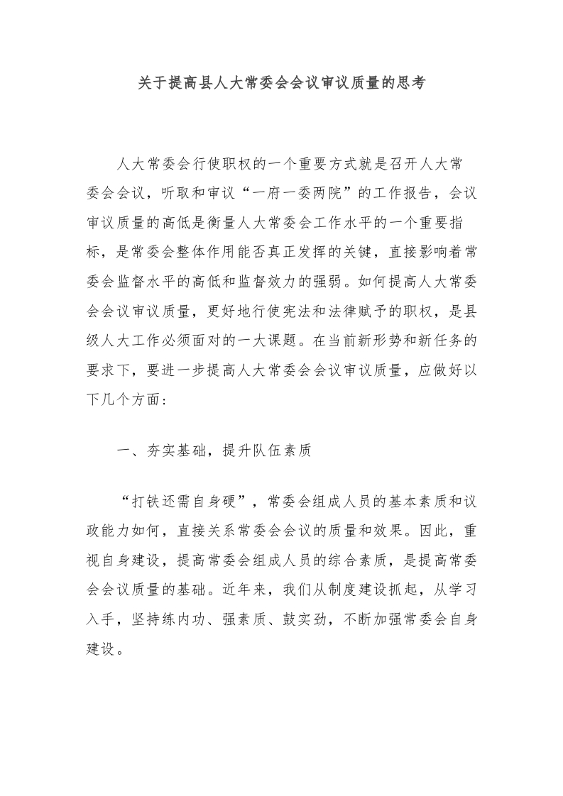 首页讲课讲稿关于提高县人大常委会会议审议质量的思考