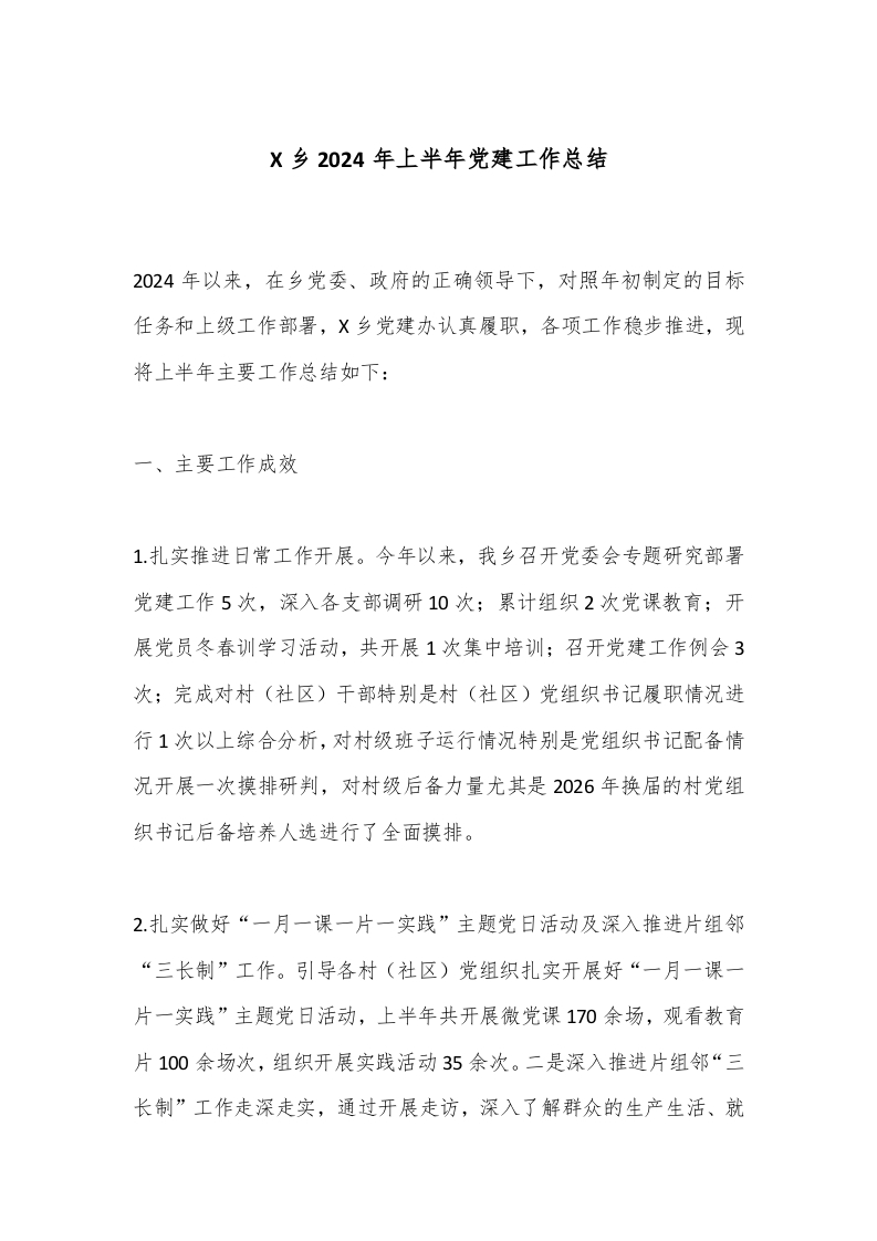 首页讲课讲稿X乡2024年上半年党建工作总结