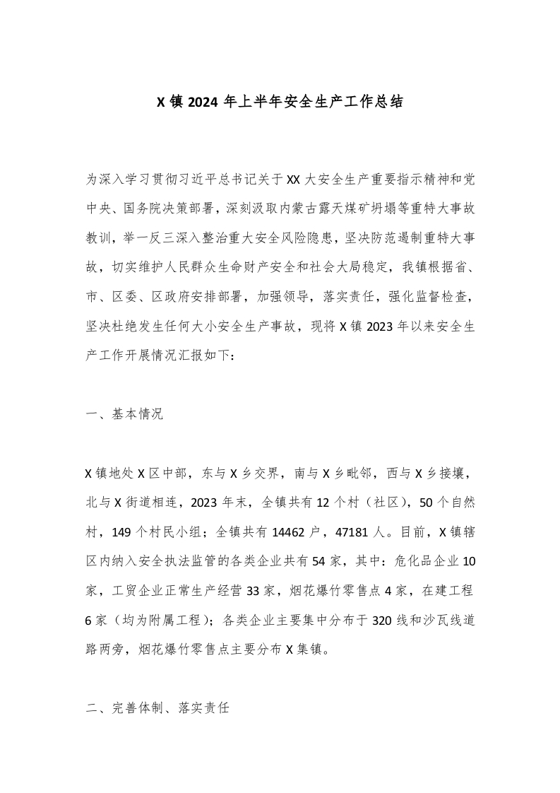 首页讲课讲稿X镇2024年上半年安全生产工作总结