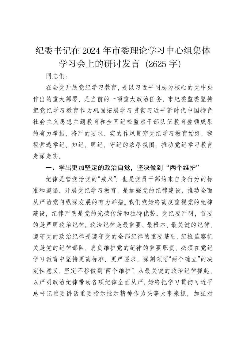 首页学习提升纪委书记党纪集体学习会上的研讨发言2625字