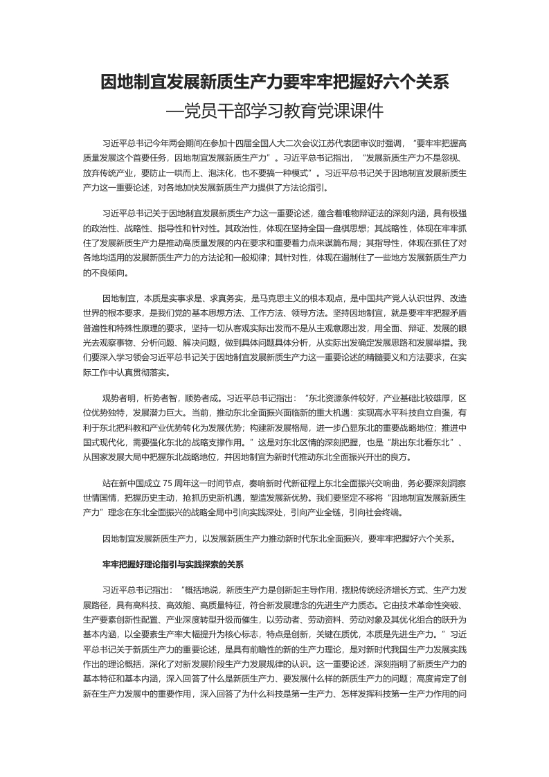 发展新质生产力要牢牢把握好六个关系PPT党政风党员干部学习教育党课课件(讲稿)