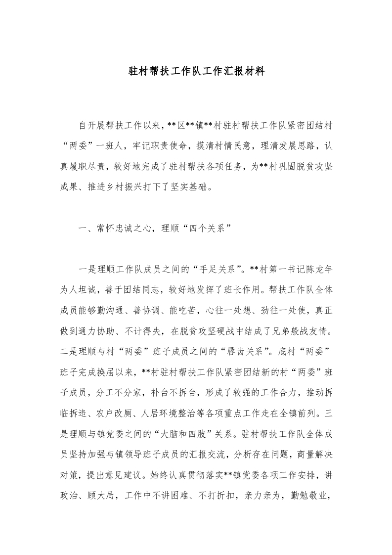首页材料汇编驻村帮扶工作队工作汇报材料