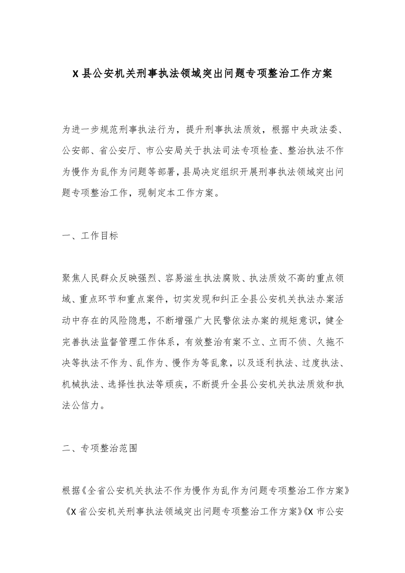 X县公an机关刑事执法领域突出问题专项整治工作方案