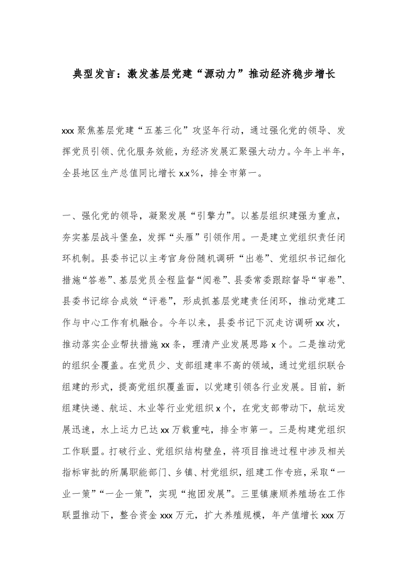 首页讲课讲稿典型发言:激发基层党建“源动力”推动经济稳步增长