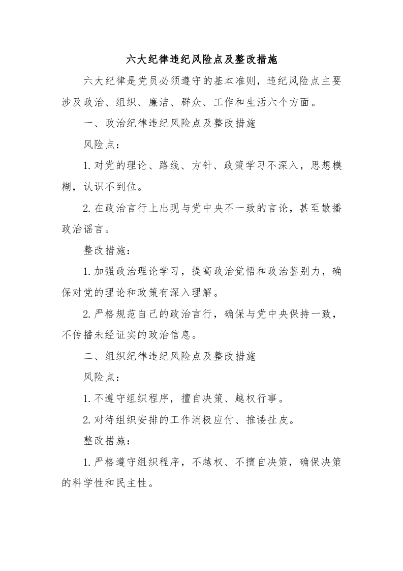 六大纪律违纪风险点及整改措施