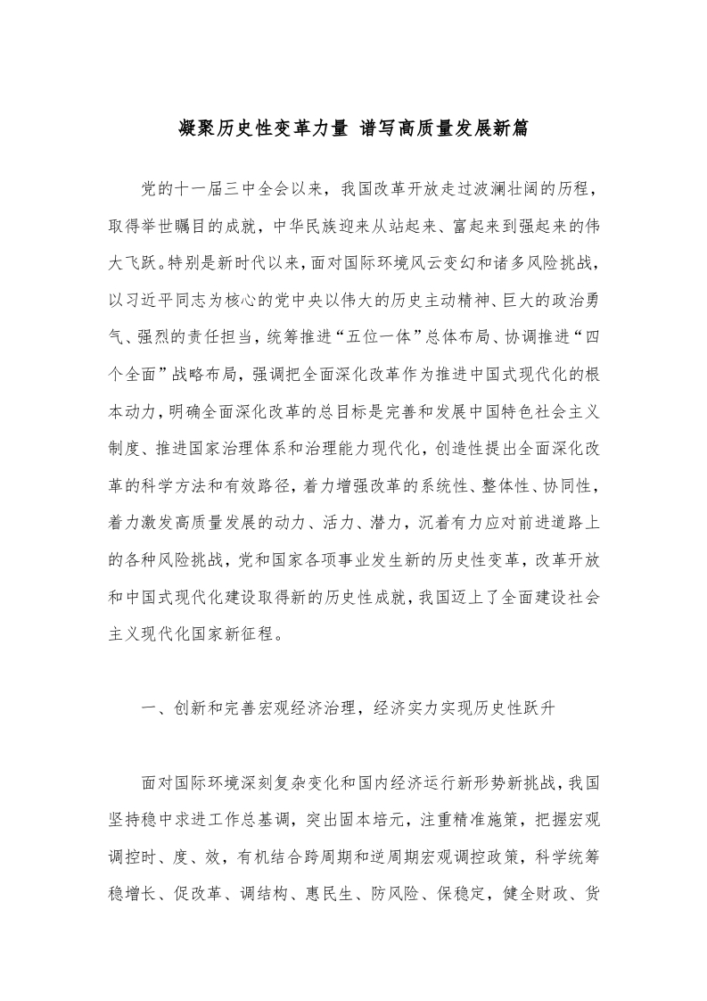 首页精选范文凝聚历史性变革力量 谱写高质量发展新篇