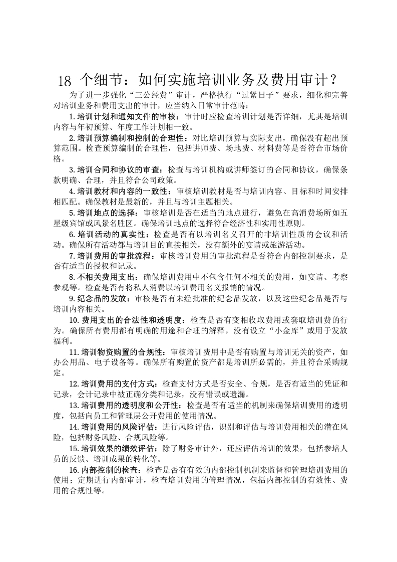 首页精选范文18个细节:如何实施培训业务及费用审计?