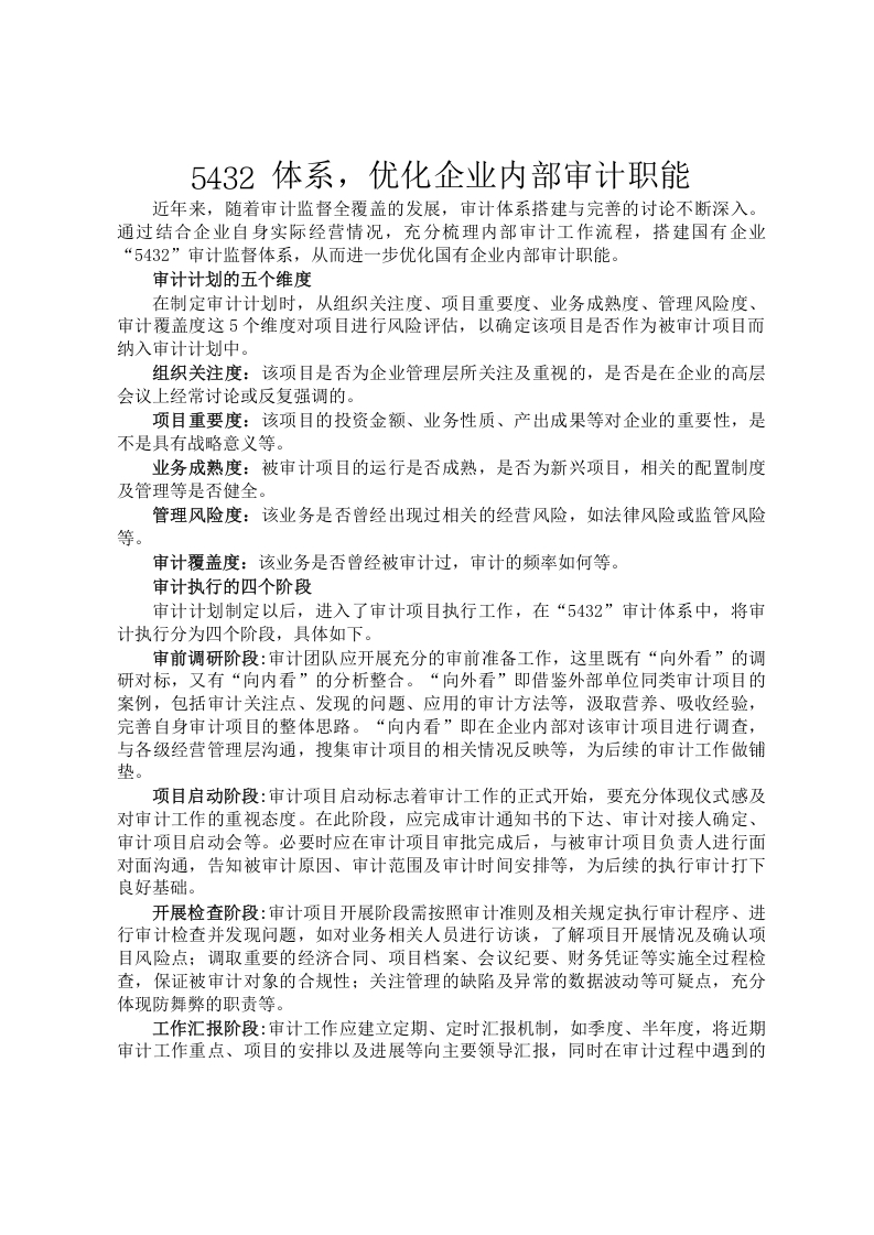 首页精选范文5432体系,优化企业内部审计职能