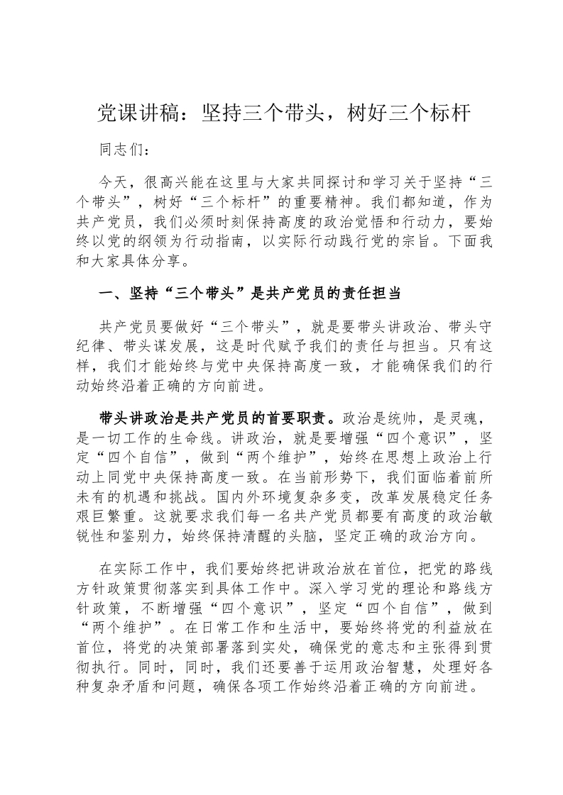 首页精选范文党课讲稿:坚持三个带头,树好三个标杆