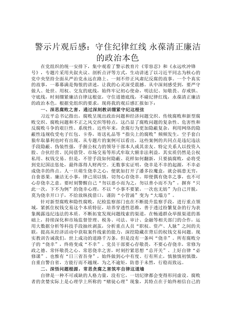 首页讲课讲稿警示片观后感:守住纪律红线 永葆清正廉洁的政治本色