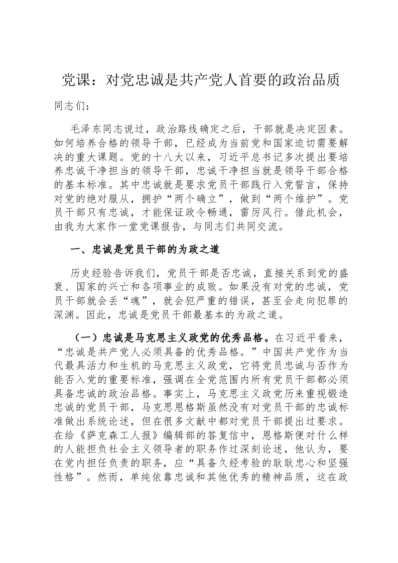 首页学习提升党课:对党忠诚是***人首要的政治品质