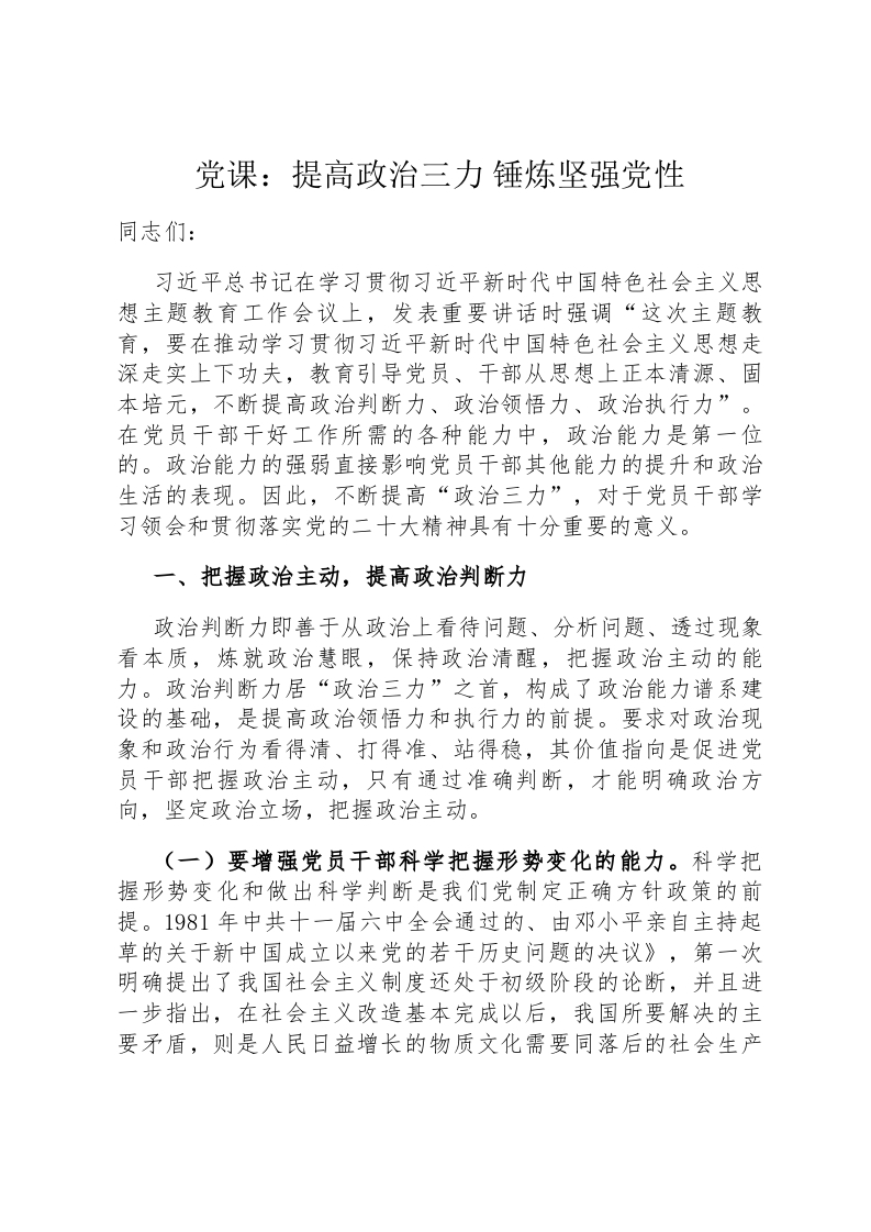 首页学习提升党课:提高政治三力 锤炼坚强党性