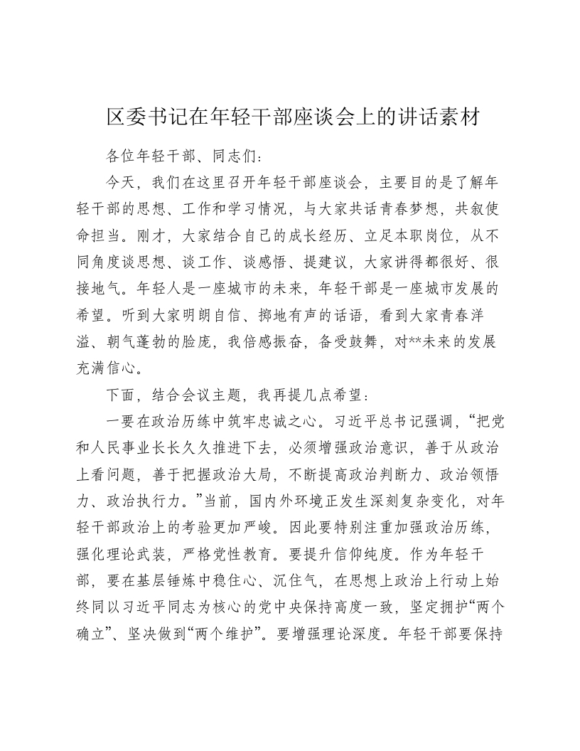 首页讲课讲稿区委书记在年轻干部座谈会上的讲话素材