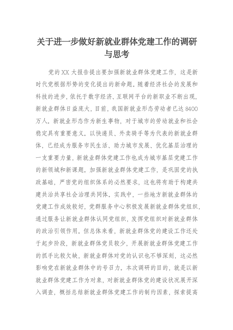 首页讲课讲稿关于进一步做好新就业群体党建工作的调研与思考
