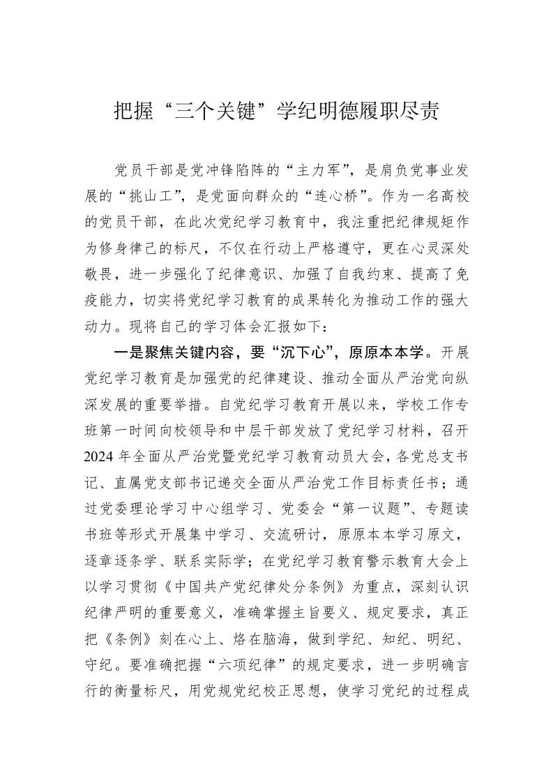 首页讲课讲稿把握“三个关键”学纪明德履职尽责