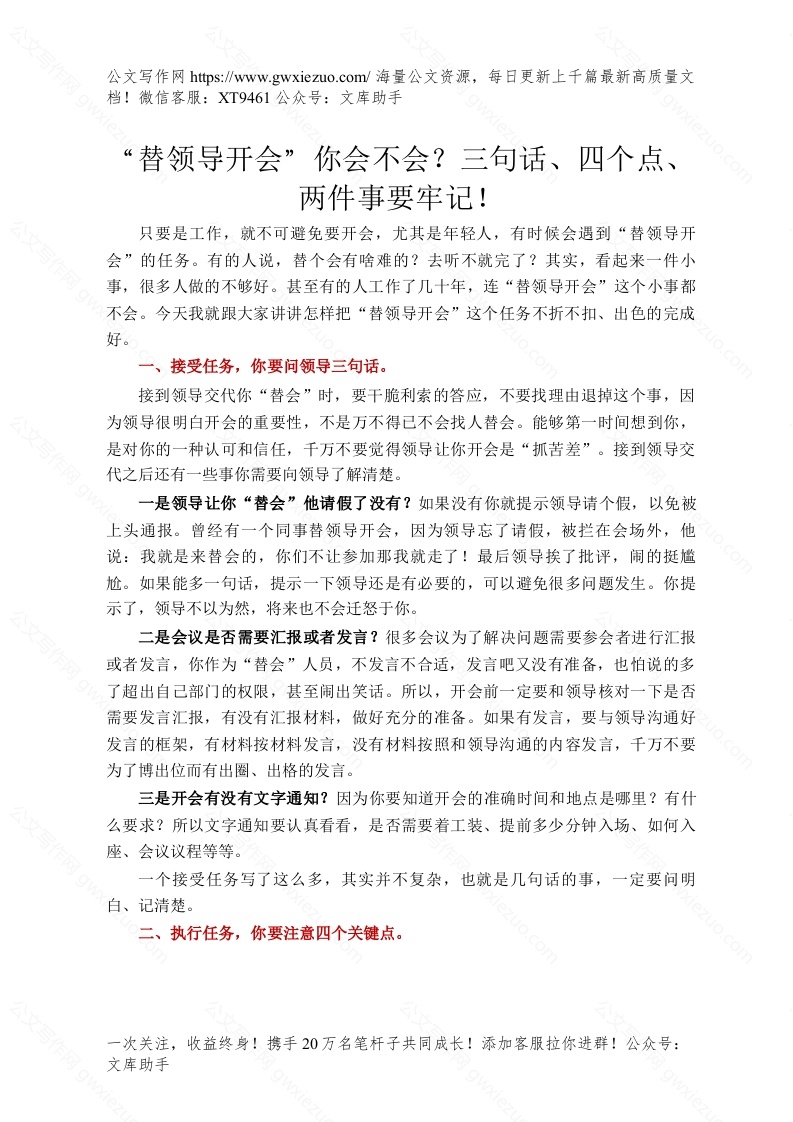 “替领导开会”你会不会?三句话、四个点、两件事要牢记!