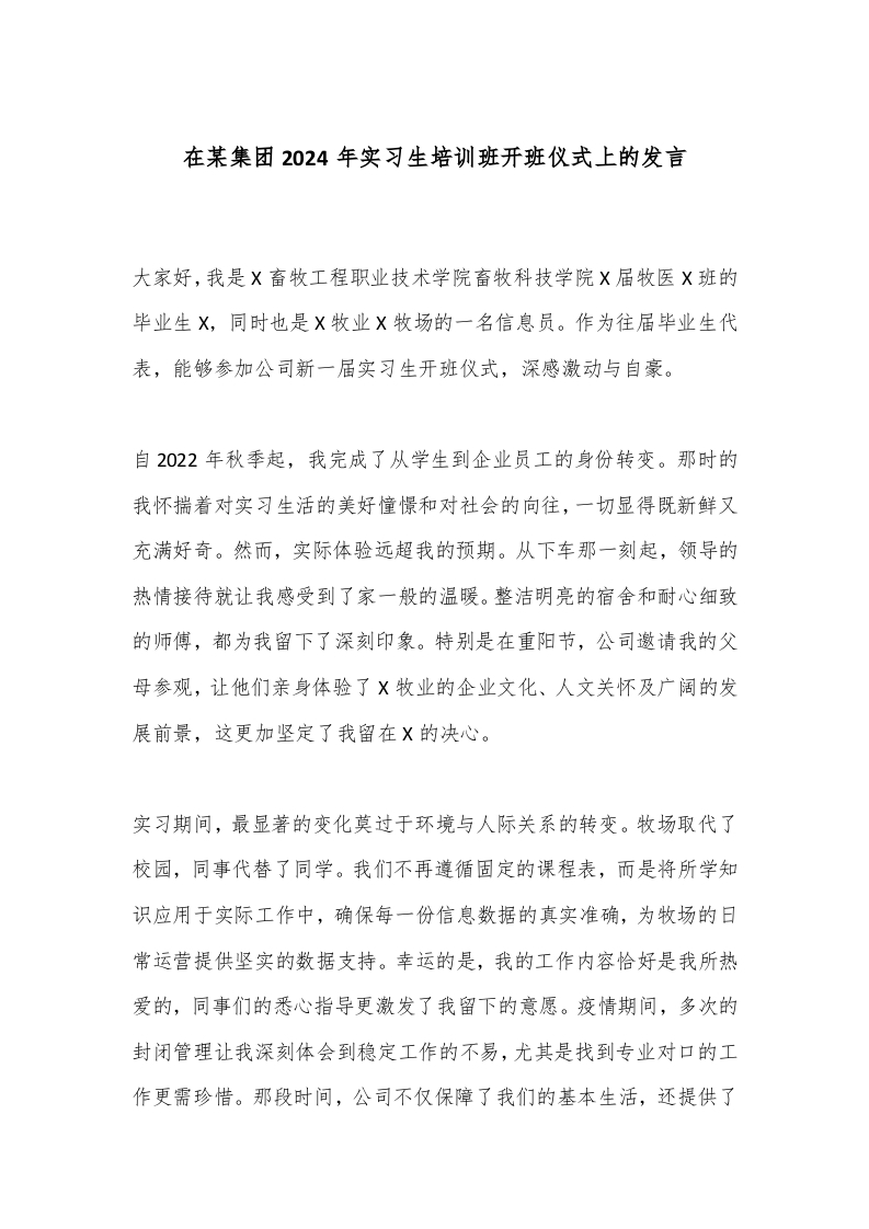 首页学习提升在某集团2024年实习生培训班开班仪式上的发言