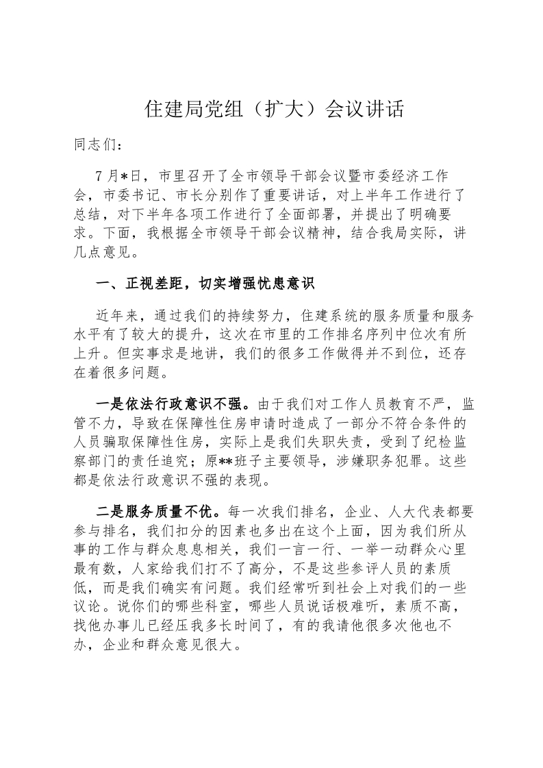 首页讲课讲稿住建局党组(扩大)会议讲话