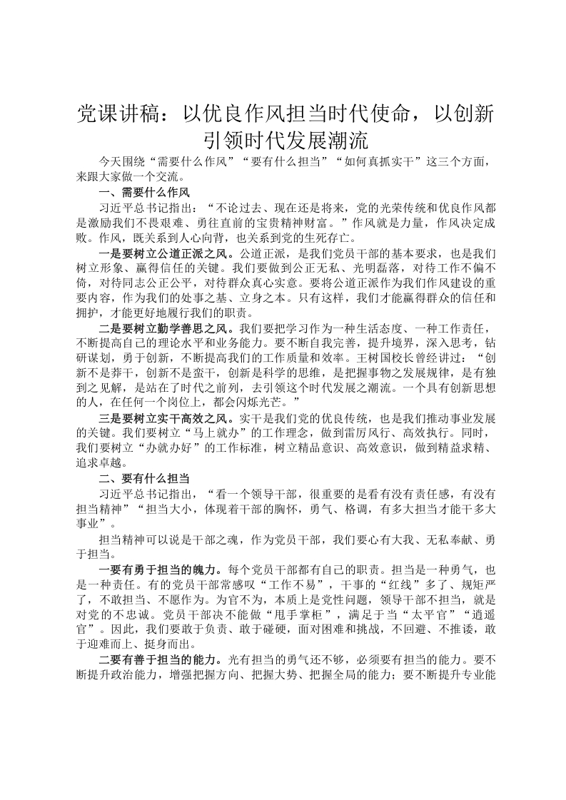 党课讲稿:以优良作风担当时代使命,以创新引领时代发展潮流