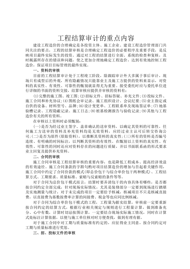 工程结算审计的重点内容
