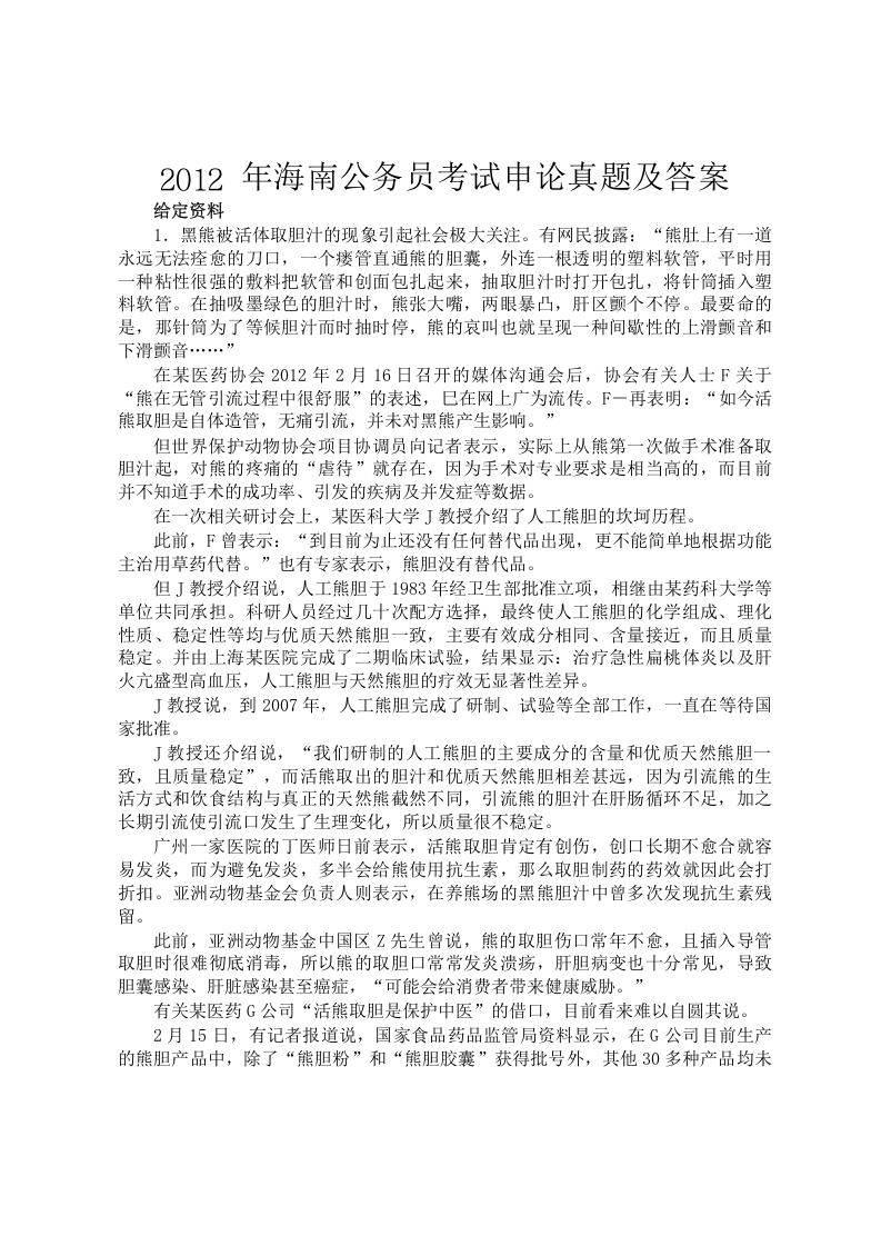 首页公考遴选2012年海南公务员考试申论真题及答案