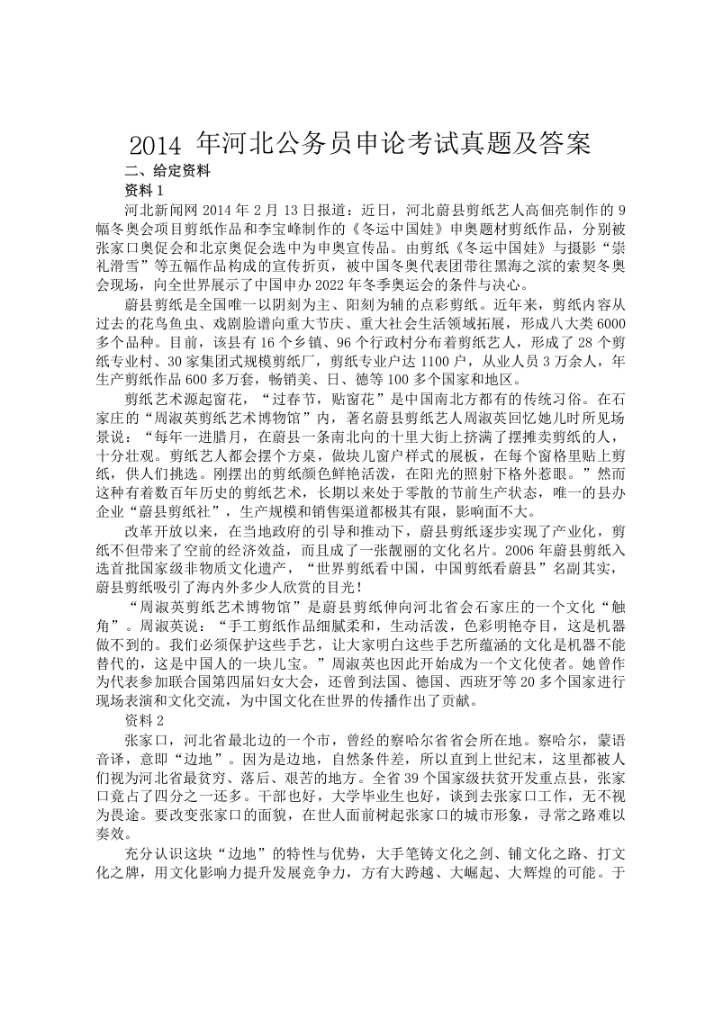 首页公考遴选2014年河北公务员申论考试真题及答案