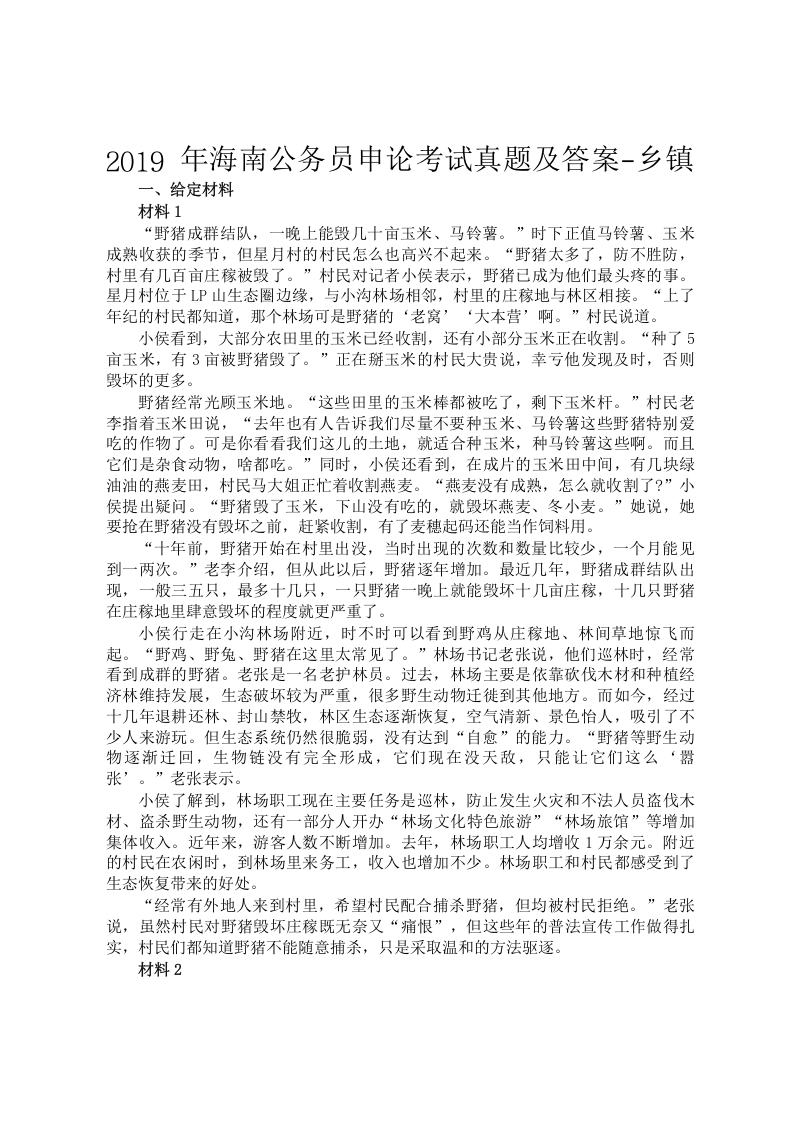 首页公考遴选2019年海南公务员申论考试真题及答案-乡镇
