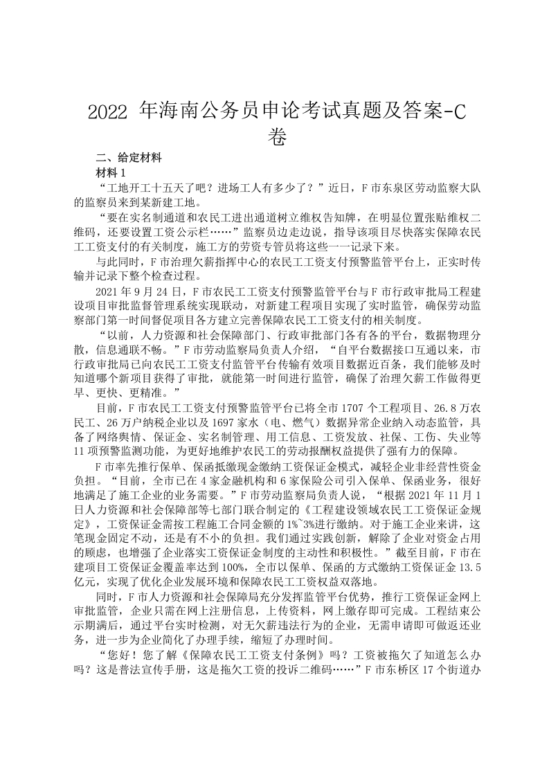 首页公考遴选2022年海南公务员申论考试真题及答案-C卷