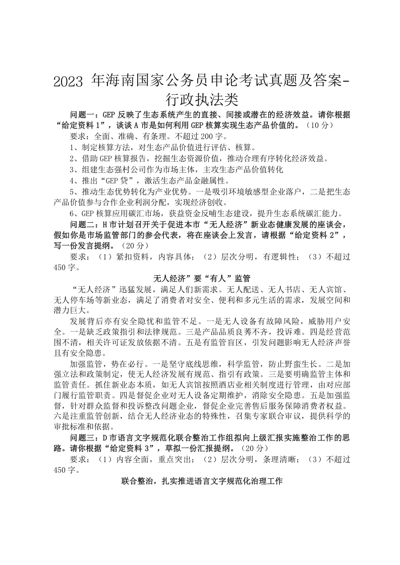 2023年海南国家公务员申论考试真题及答案-行政执法类