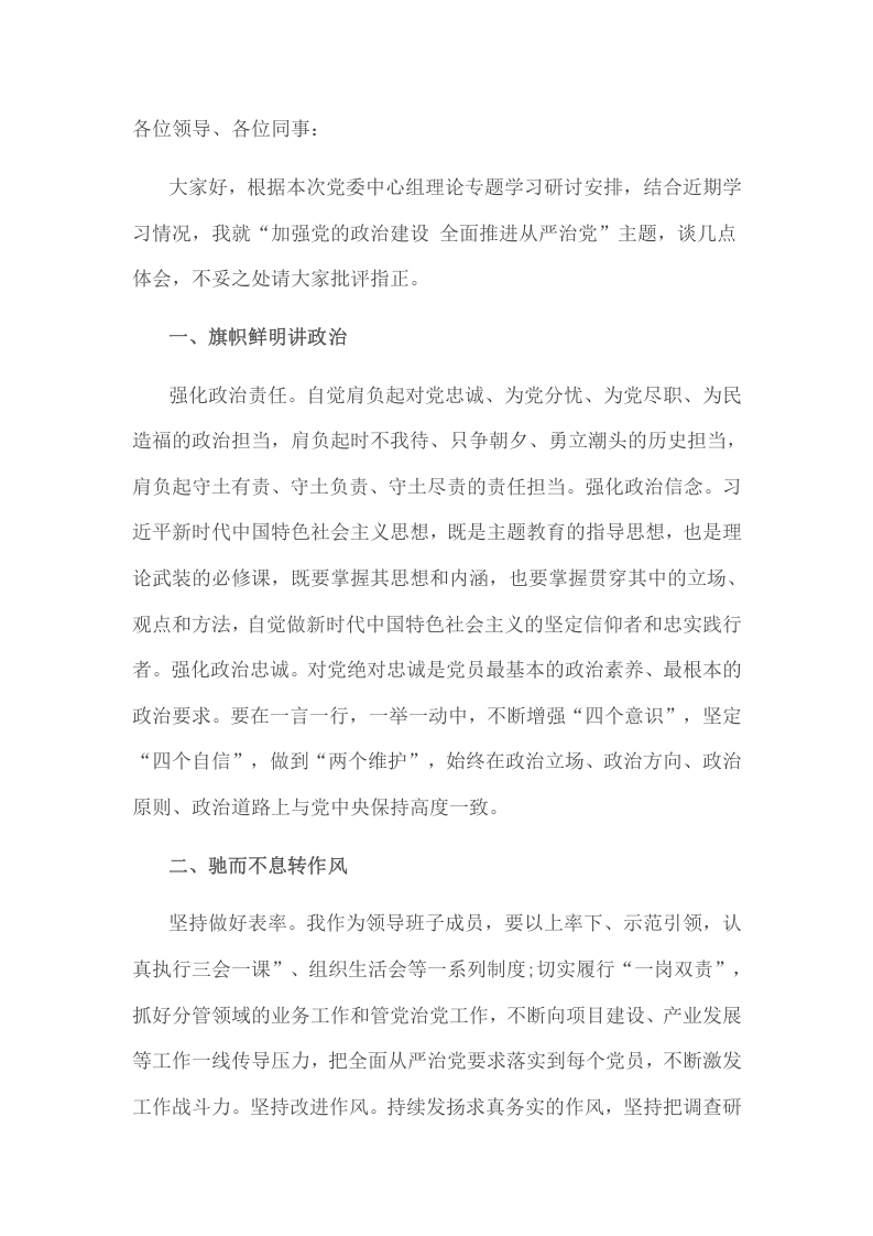 某镇“加强党的政治建设 全面推进从严治党”专题学习研讨发言材料