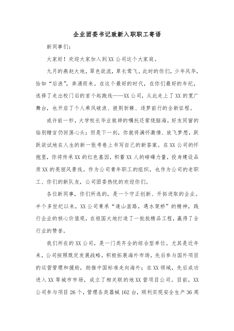 首页讲课讲稿企业团委书记致新入职职工寄语