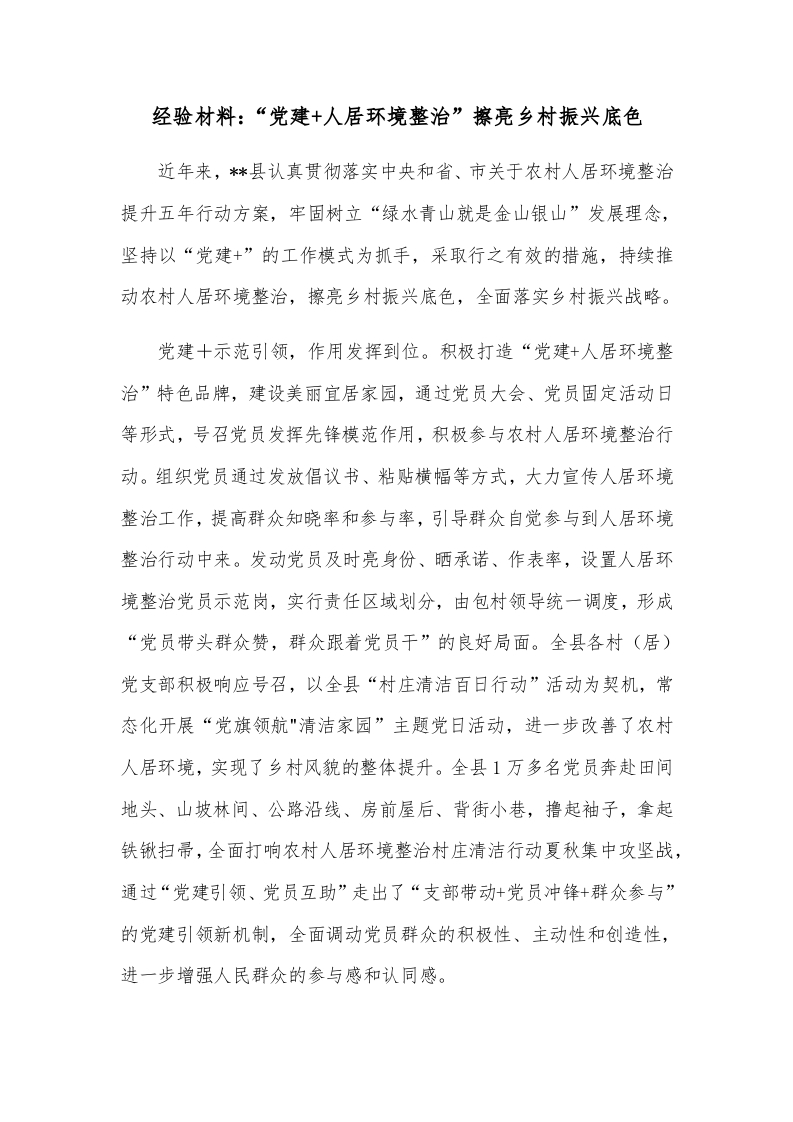 首页精选范文经验材料:“党建 人居环境整治”擦亮乡村振兴底色