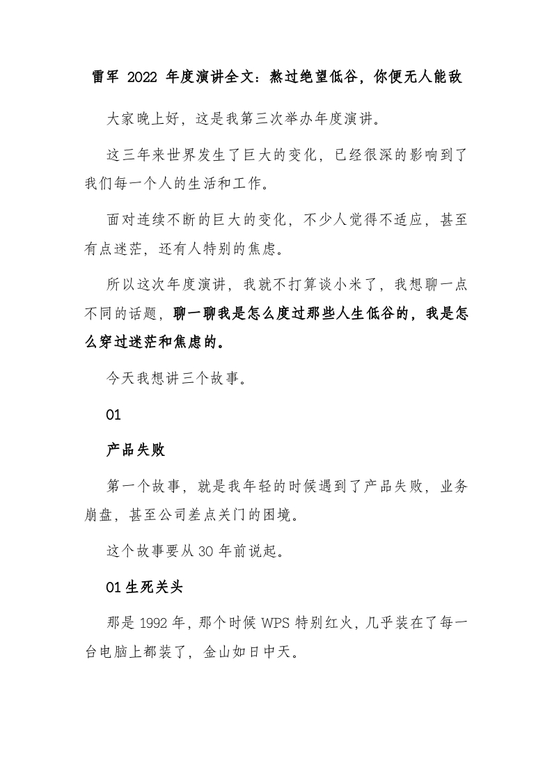 首页精选范文雷军 2022 年度演讲全文:熬过绝望低谷,你便无人能敌
