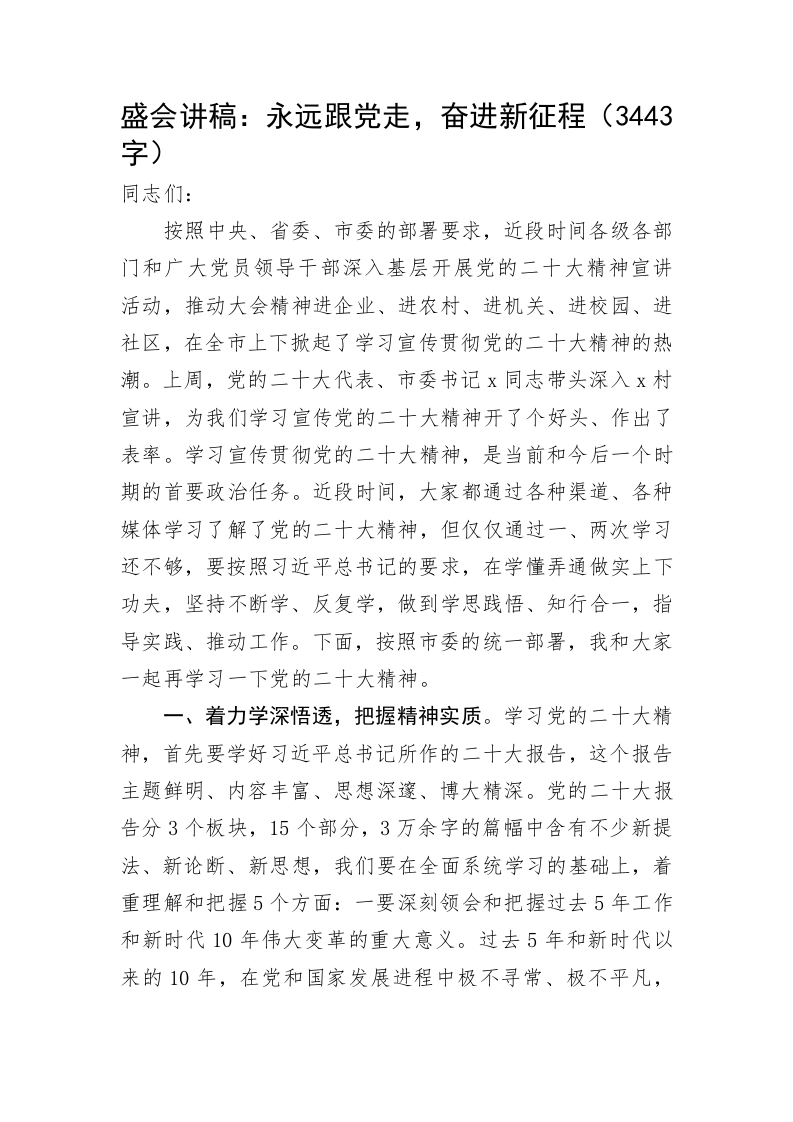 二十大党课讲稿:永远跟党走,奋进新征程